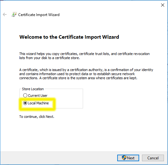 - Right click the certificate (.cer file) and select Install Certificate to launch the Certificate Import Wizard.