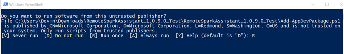 - When the PowerShell window opens, press [R] to proceed with the installation.