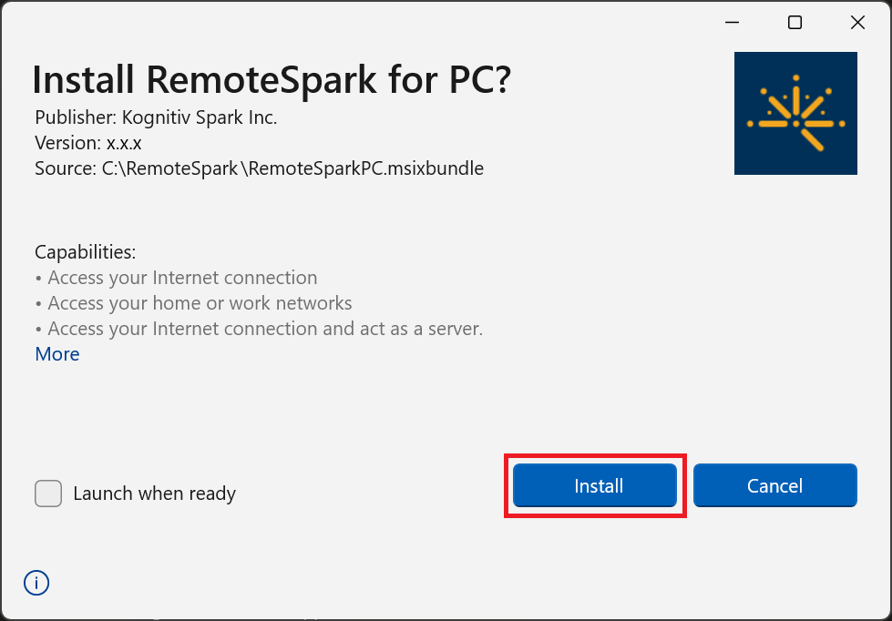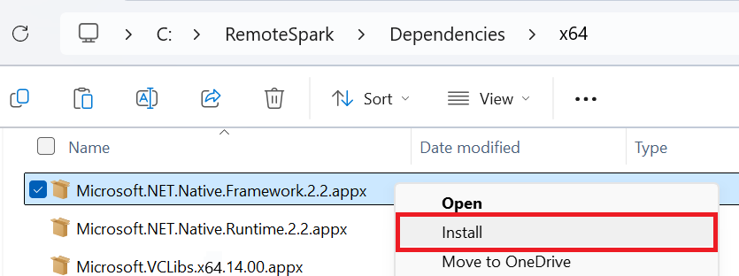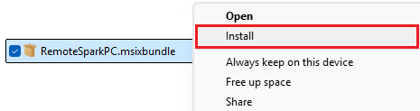 - Right click on the RemoteSpark MSIXBUNDLE file and select Install.
