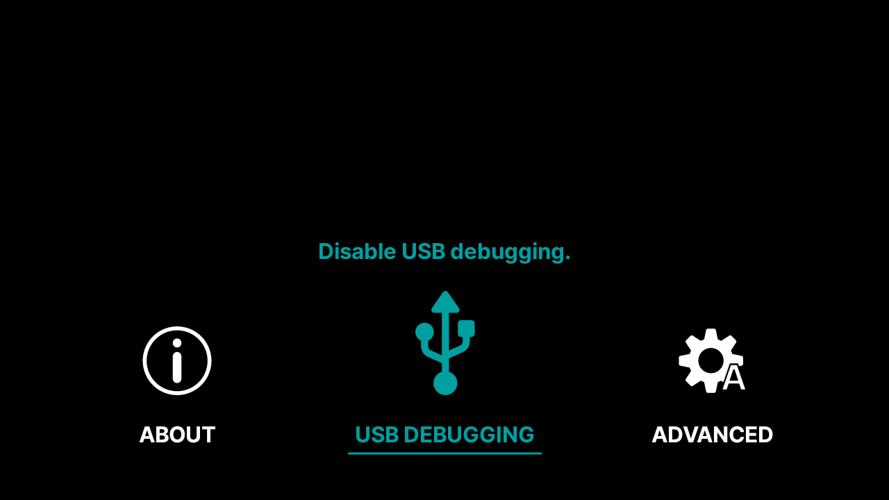 ![]() | You should now see the 2nd page of settings. Highlight over the "USB DEBUGGING" icon and select once. |