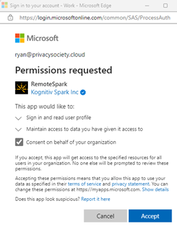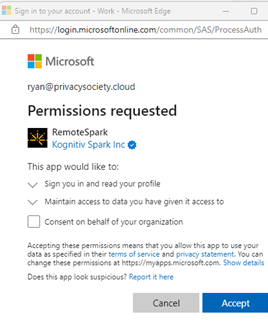 3. Give consent to allow the users of your tenant to login to RemoteSpark with their Microsoft accounts.