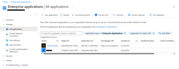 4. Login to Entra ID and navigate to your Enterprise Applications and you will now see RemoteSpark as an application.